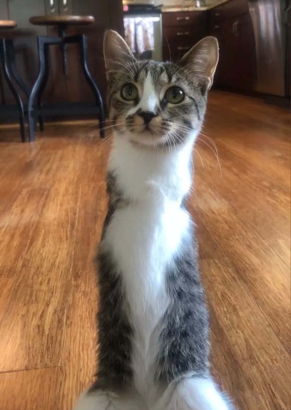 At six months old, Duck is the fastest 2-legged kitten there is.